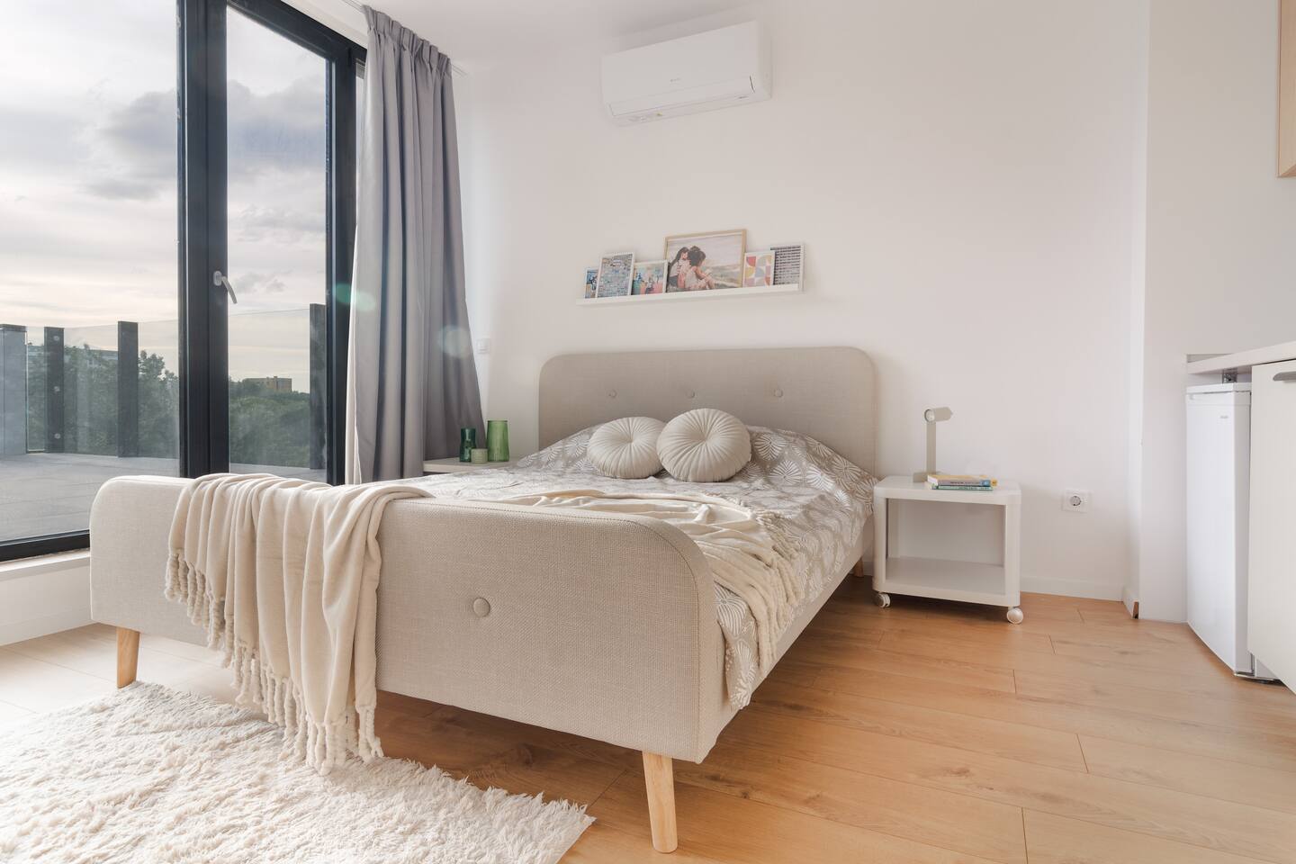 Stunning views to the Vitosha mountain from the patio of this one bedroom home on the fifth floor of a new building. Everything you need to spend one night or one month in style and comfort in Sofia - a carefully appointed living room, a comfy large bed in the tastefully decorated and a fully furnished kitchnette. A part of My Campus Studios and Apartments, hosted by dedicated and experienced superhosts.